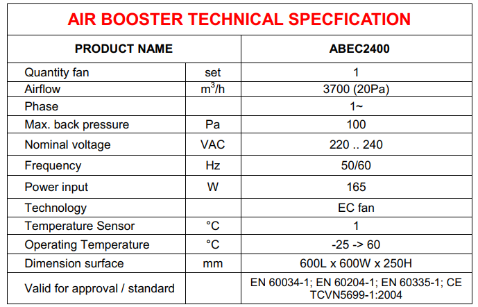 Giải mát làm mát điểm nóng cục bộ với Airboooster ABEC2400 sử dụng quạt Ebmpast S3G350-AP01-60 và hệ khung sắt không gỉ.