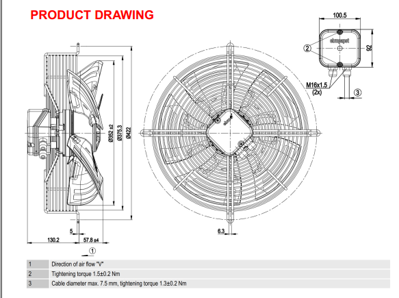 Sử dụng quạt Ebmpapst, model S4E500AM0301 sản xuất theo công nghệ Đức, nhập tại Ấn Độ / Singapore.